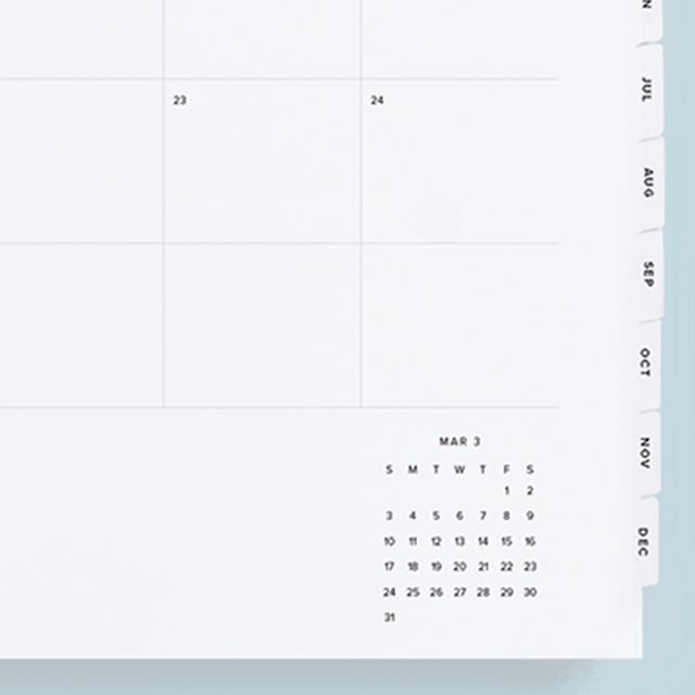 ✕Easily flip from month to month with sturdy laminated double-sided tabs.