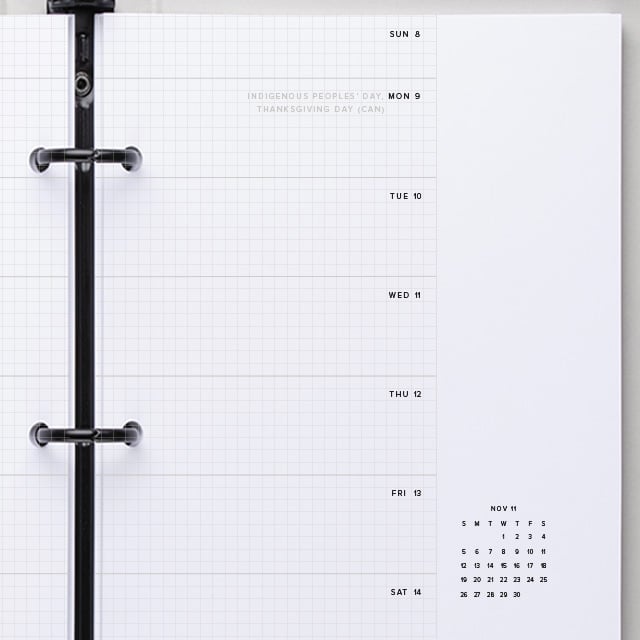 Meet the reusable Compact Binder Planner, perfectly sized for portability and efficiency. This versatile academic format features durable matte black hardware and 7.25” × 9” water-resistant bookcloth. Plus, we selected our fan-favorite Weekly Grid Planner layout for this interior—a two week overview in a grid format makes this planner perfect for professionals, students, and parents alike. Functional size meets flexibility for your very best plans—year after year.