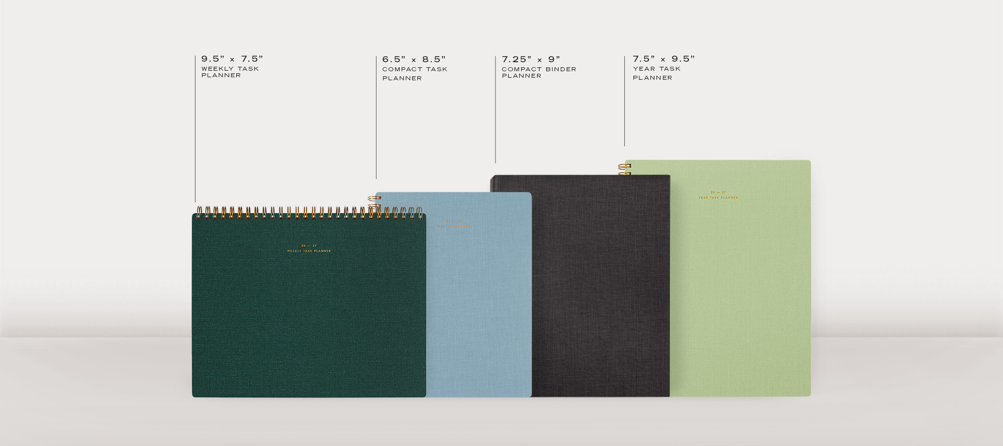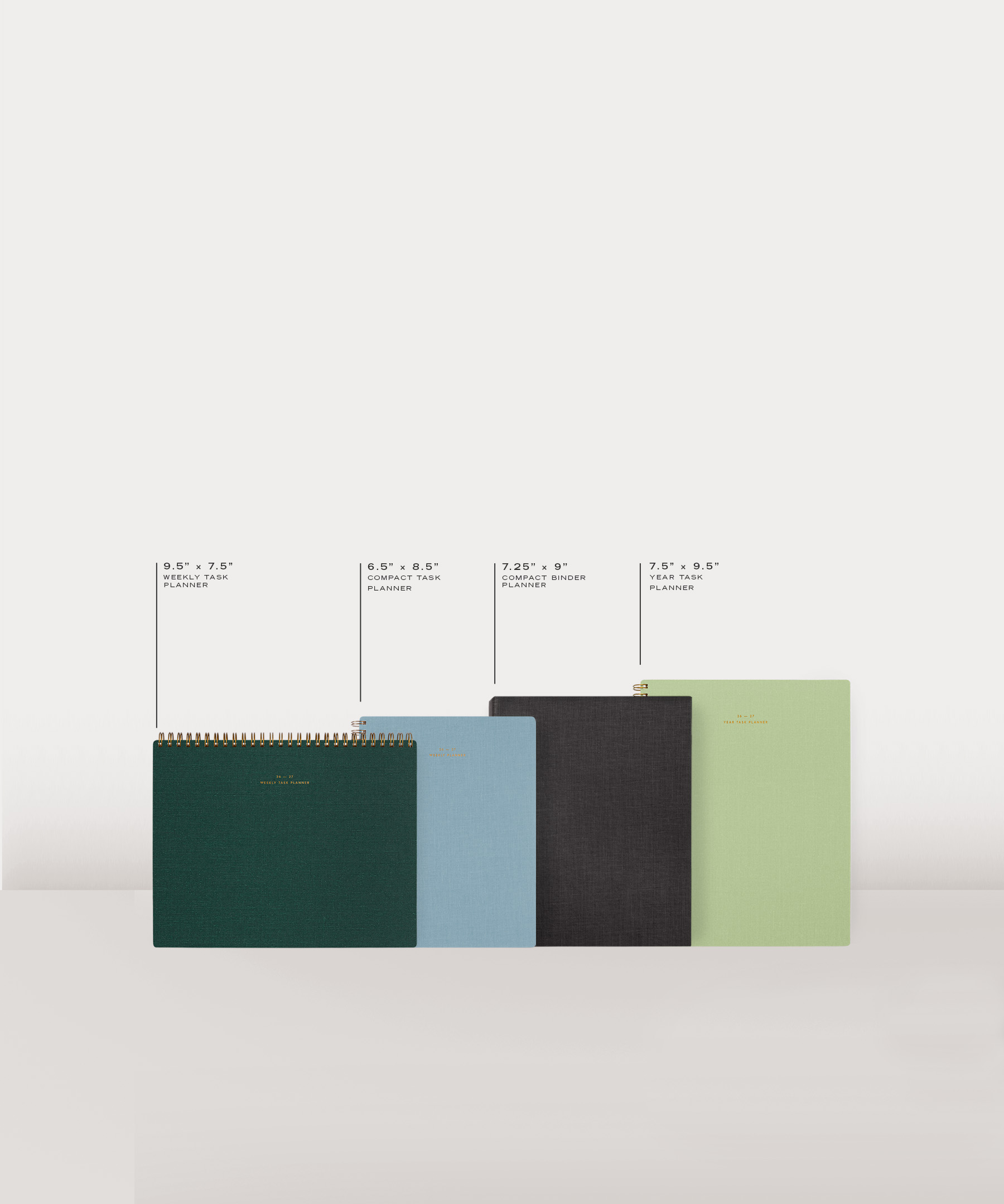 The Weekly Task Planner packs a productivity punch with weekly spreads, a Sunday start, and an hourly break-down of each day. The opposite page (or top page if laid open) features plenty of room for notes, tasks, and priorities so all your to-dos can live in one place, plus goals and monthly pages for big-picture planning. Better yet, wire-o top-binding makes this 9.5” × 7.5” planner the ideal choice for left-handers. We've compiled your favorite details from our best-selling formats with innovative elements for planning made simple.
