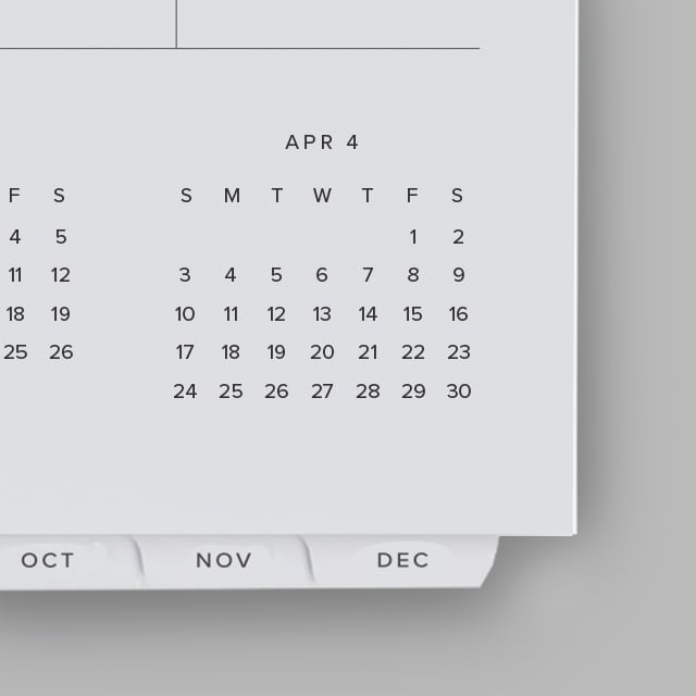 ✕Easily flip from month to month with sturdy laminated double-sided tabs.